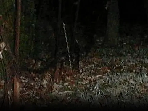 It is entirely possible this is one of the many types of hooded beings around the area since it does look like there could be a hood behind it’s head. By the look of it’s face, one can understand why we called this a “werecat”. I think the back end looks more like a kangaroo the way the tail is so thick at the base. I’ve never seen anything like it and this is the only picture I have.